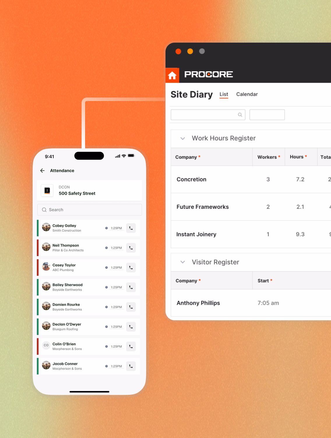 They sure do. Every entry and exit is automatically logged to Procore’s Site Diary, giving you a complete, accurate and audit-ready record.