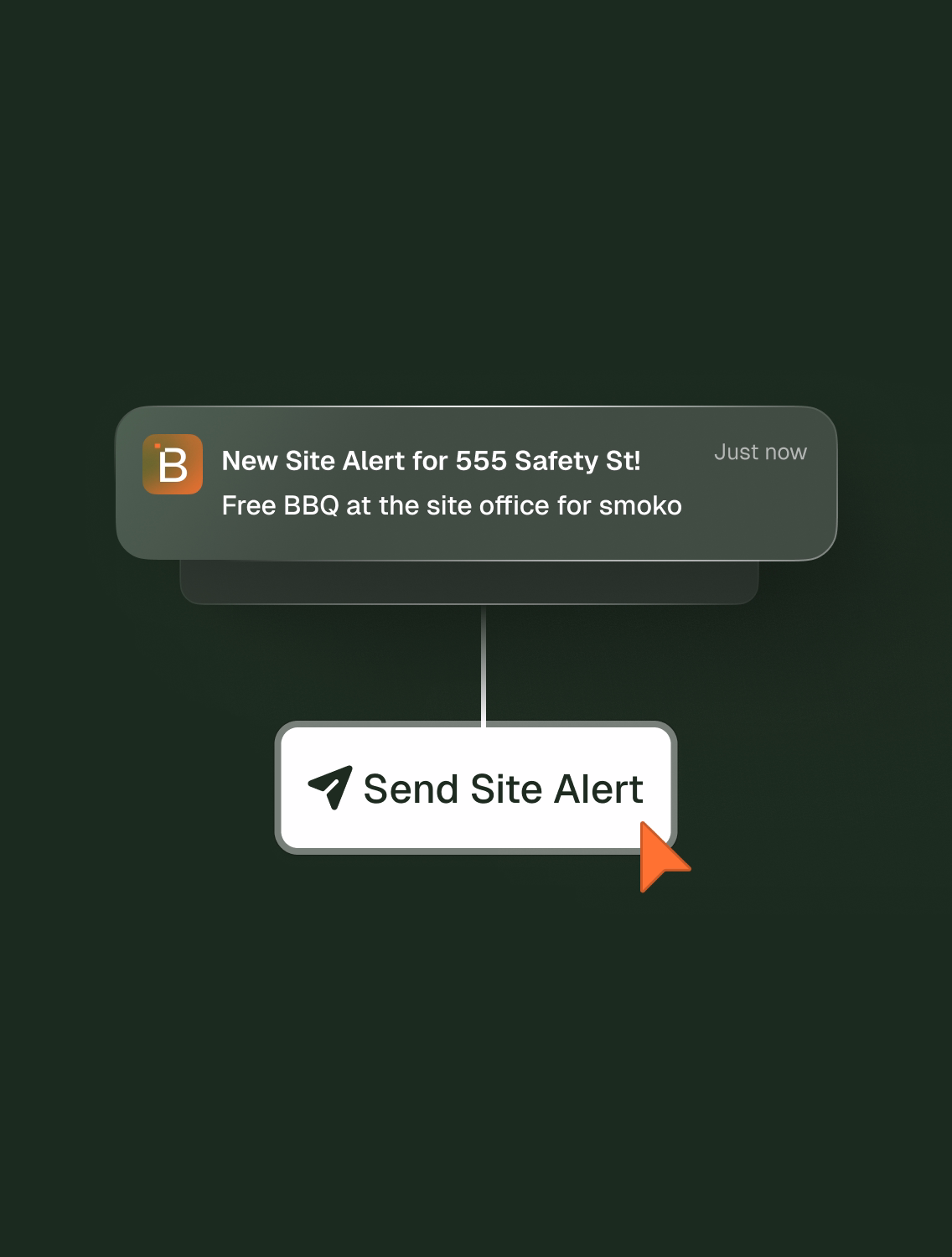 Site Alerts aren’t just for emergencies. Plenty of our clients use them to remind workers to wear sunscreen, get ready for a safety inspection, give a heads up that parking inspectors are on the block, or even to head to the site office for a free snag at smoko (we get it, a free barbie moves people). It’s a favourite tool among site teams – and not just because of the snags.