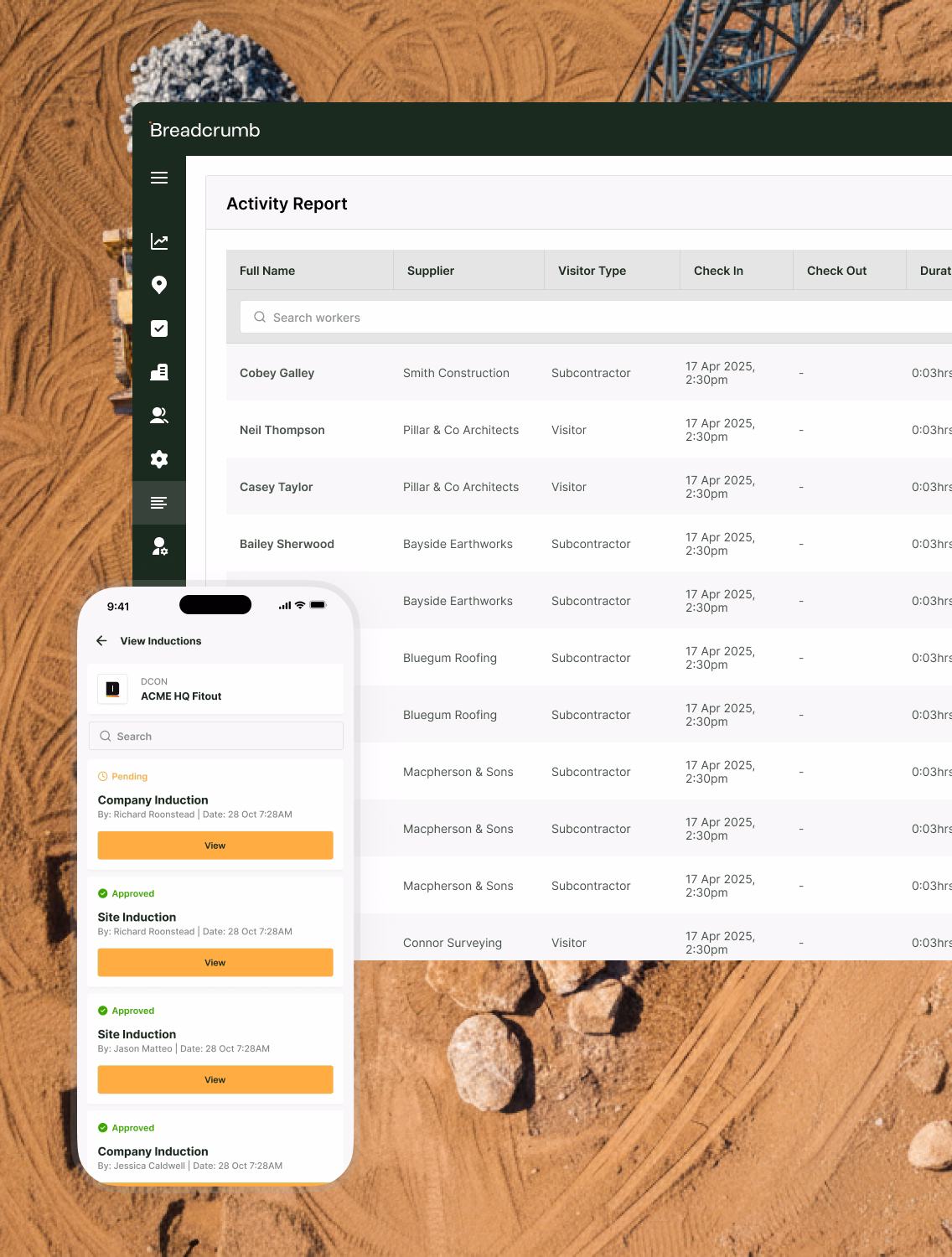“Using the Breadcrumb platform, we now have peace of mind and visibility to know who is on any of our sites and their respective safety information, and have the accessibility to share relevant safety documentation in case WorkSafe visits.”