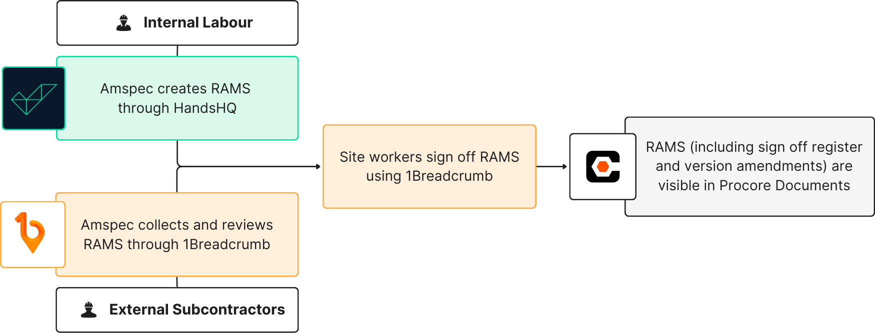 How Amspec uses systems Procore, Breadcrumb and HandsHQ together to manage RAMS.